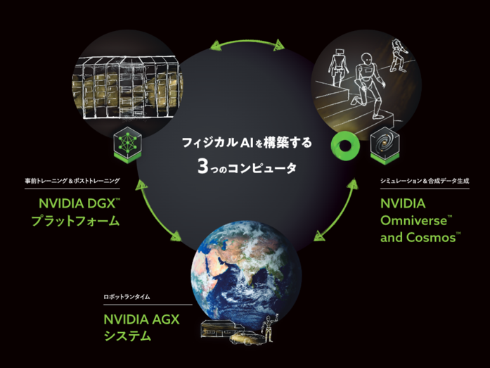 マクニカは今回、NVIDIAの提唱する「3つのコンピューターによるソリューション」をテーマに展示しています。