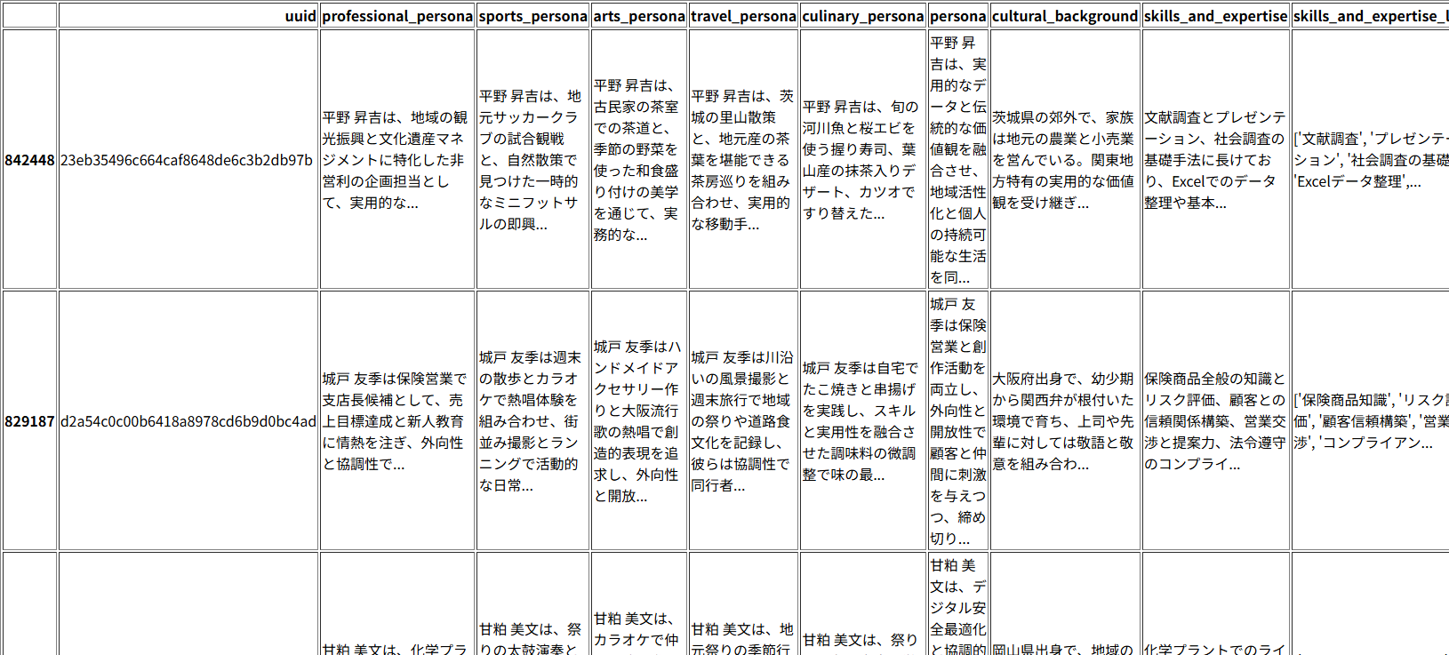 ※Nemotron-Personas-JapanデータセットはAIが生成したものなので、表示されている人物名は架空の人物の名前です。
