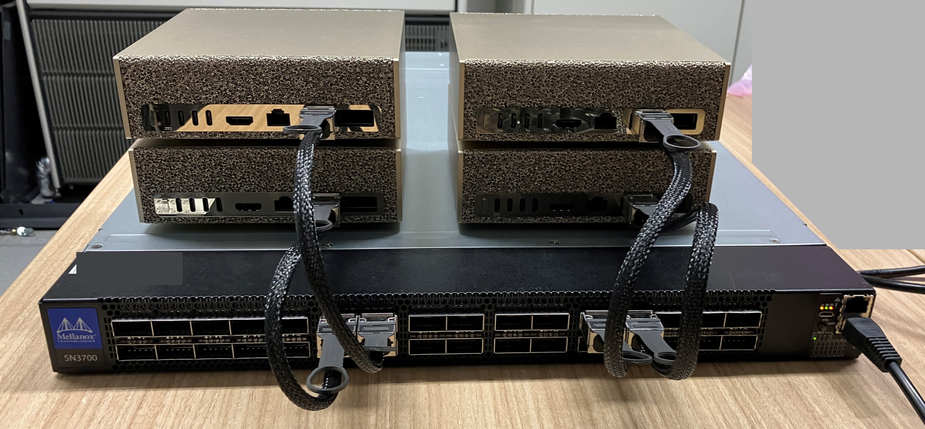 今回は、より大規模なGPUクラスターを意識してNVIDIA® Spectrum®-2 SN3000 イーサネット スイッチとDGX Spark 4台を使用してGPUクラスターを構築し、分散学習を実施してした様子をご紹介します。