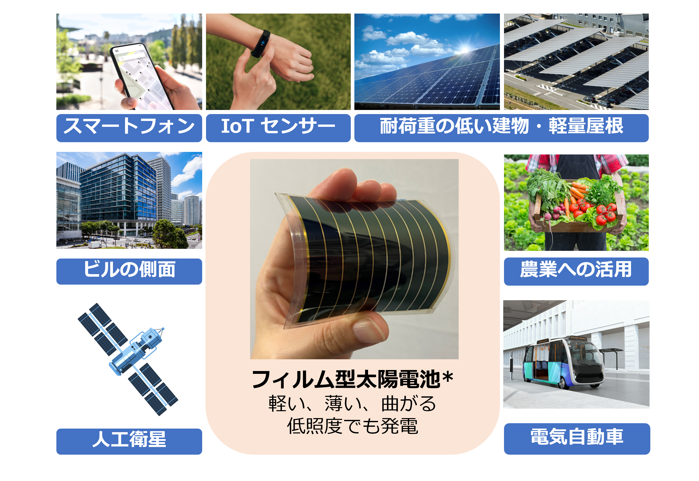 これまでにない使い方で発電が可能となり、脱炭素社会の実現、再生可能エネルギーの拡大を促進する次世代型太陽電池として注目されています。