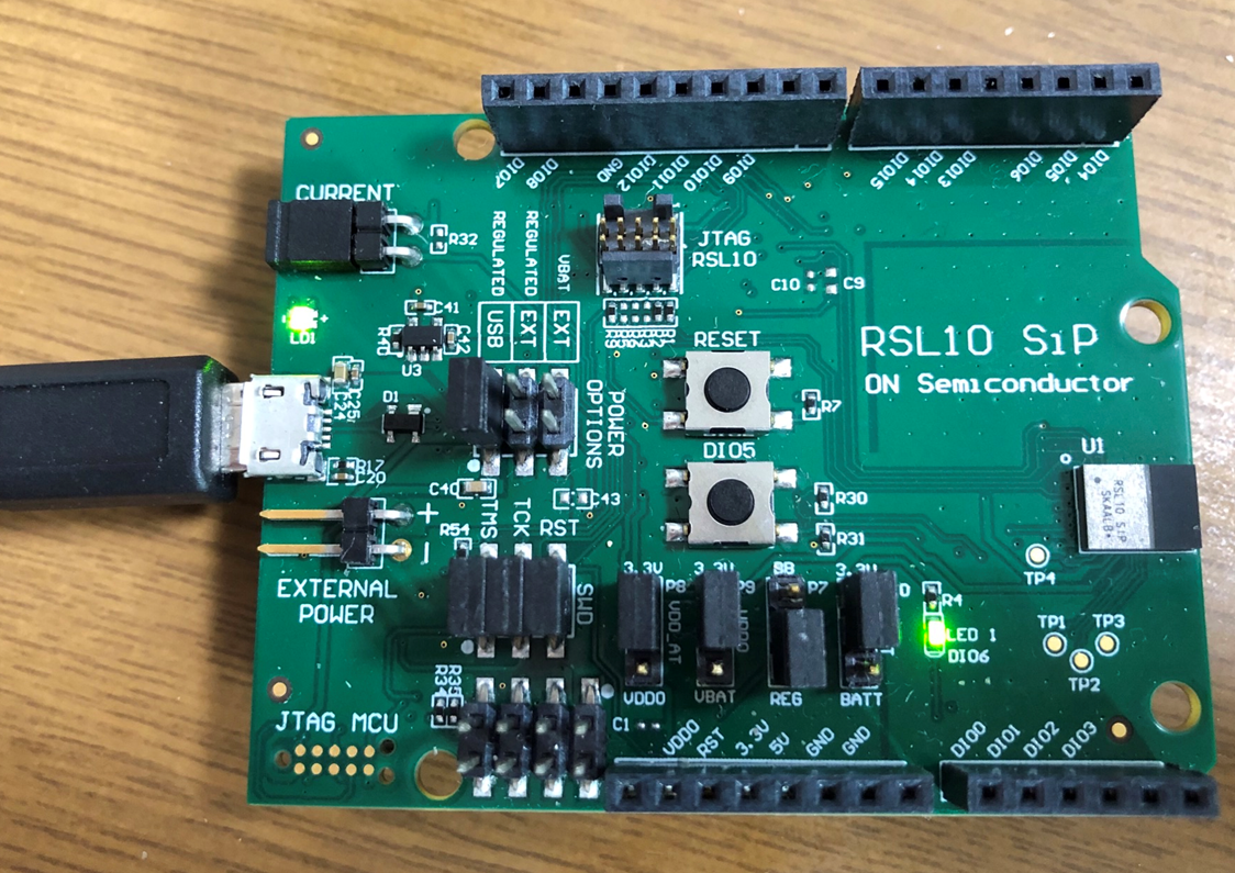 RSL10-SIP-001GEVBを以下のように接続してください。