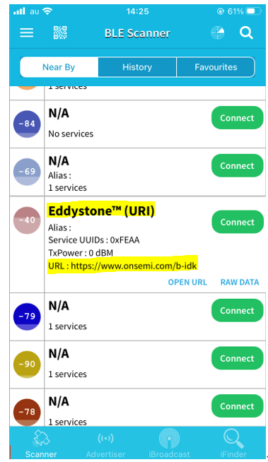 3.以下よりBLE Scannerを用いて、Eddystone Beaconでデータ送信されている事を確認できます。(図12参照)