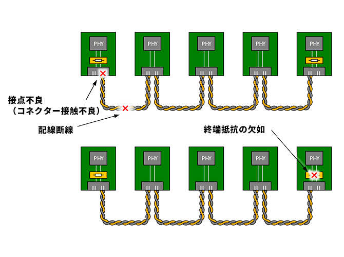 PLCAが「通信できている・できていない」だけでなく、“なぜおかしいのか” を PHY が自動検出できます。