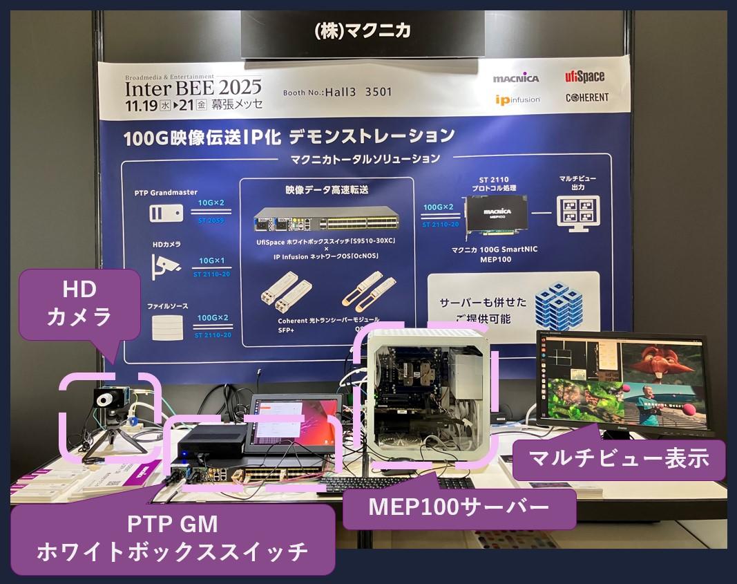 今回の Inter BEE 2025 では、IP Pavilion における「JPEG XS を活用した拠点間のリアルタイム映像伝送」と、マクニカブースにおける「汎用機器を組み合わせた柔軟な映像伝送システム」の2点を展示しました。