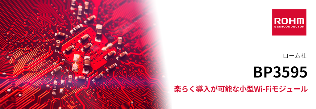 「BP3595」Wi-Fi モジュールはホストマイコンとのインタフェースがUARTの場合であれば、TCP/IPプロトコルスタック内蔵のファームウェアがROHM社より提供されています。そのため、無線LANデバイス・ドライバ開発が不要です。