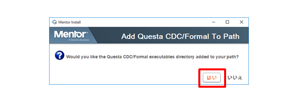 ⑨ 実行可能ディレクトリをパスに追加する場合は、「はい」をクリックします。