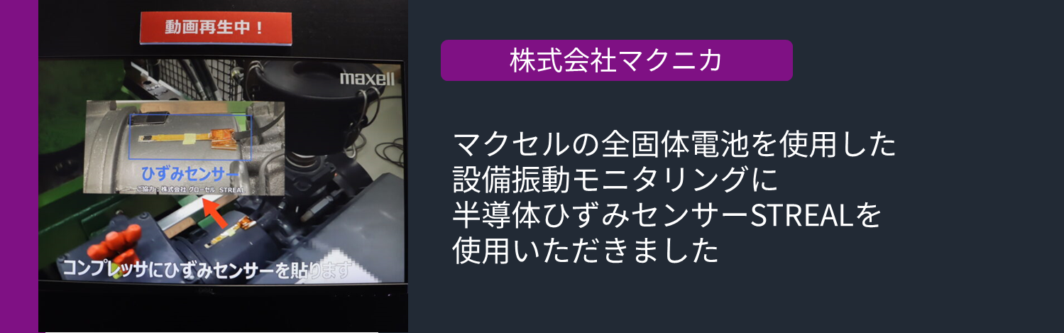 2024年1月24日(水)-26日(金)に東京ビッグサイトで行われたネプコンジャパンエレクトロニクス開発・実装展のマクセル株式会社(以下、マクセル)ブースにて展示の、設備振動モニタリングデモ機に半導体ひずみセンサーSTREALが使用されました。