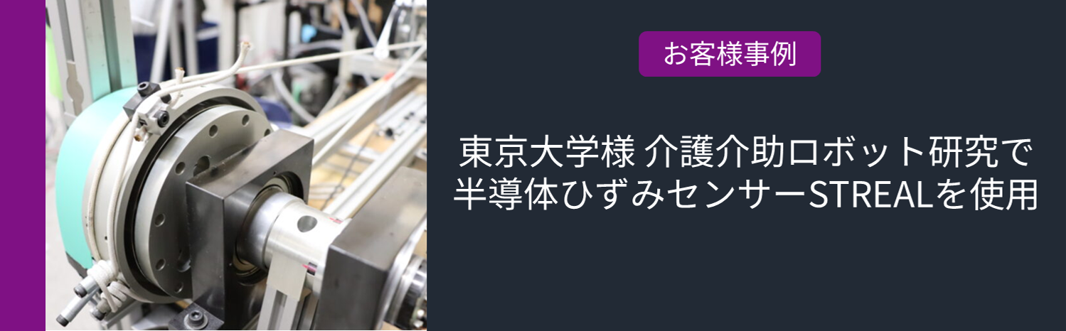 東京大学/稲葉研究所様がNEDO(国立研究開発法人/新エネルギー・産業技術総合開発機構)より委託を受けた”介護介助ロボット向け仕様策定と電源制御の検討”の実施項目である、”産業用ロボット向けトルク制御器オンラインパラメーター推定機能の実装評価”の研究で半導体ひずみセンサーSTREALトルクセンサーを使用いただきました。