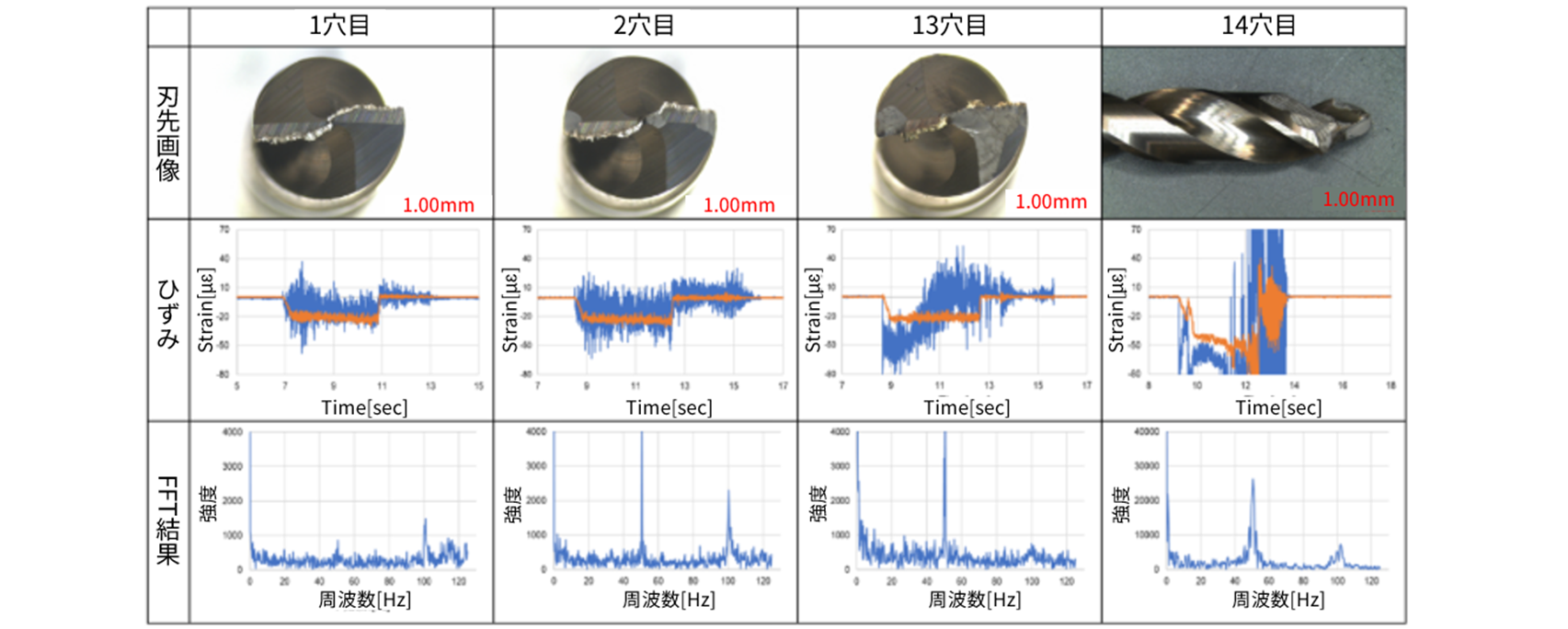 STREALによって、ドリル穴開け加工中の異常検知が可能であることを示すデータが得られました