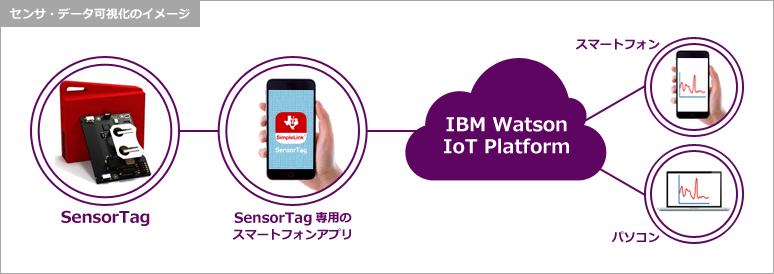 また、Texas Instruments社は「Watson IoT Platform パートナーエコシステム」にビジネスパートナーとして参加していますのでIoT向けのクラウド・ベースのプラットフォーム、IBM Watson IoT Platformへのサンプル接続が簡単にできます。加えて、IBM Watson IoT Platformを利用することで、センサ・データの可視化を実現することができます。