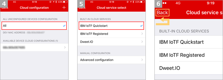 1. Backで最初の画面に戻ったら再度、SensorTagのアイコンをタップします。