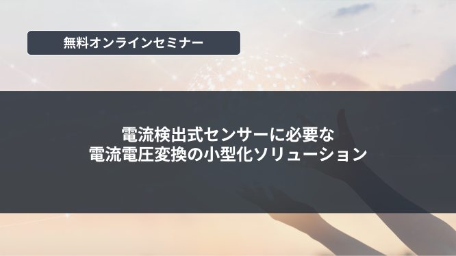 これから開催[オンラインセミナー]電流検出式センサーに必要な電流電圧変換の小型化ソリューション