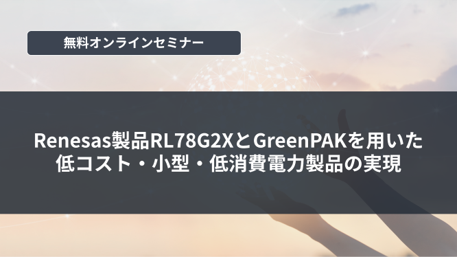 これから開催[オンラインセミナー]Renesas製品RL78G2XとGreenPAKを用いた低コスト・小型・低消費電力製品の実現