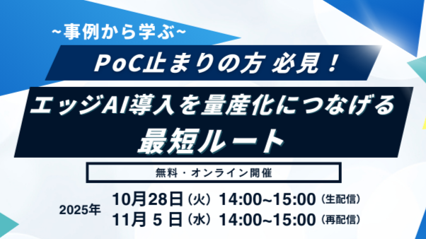 これから開催【事例から学ぶ】PoC止まりの方必見!エッジAI導入を量産化につなげる最短ルート ~電力・熱制約、人材不足、クラウド依存...現場実装の壁をどう突破するか~