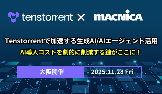 これから開催【大阪開催】AI導入コストを劇的に削減する鍵がここに!Tenstorrentで加速する生成AI/AIエージェント活用