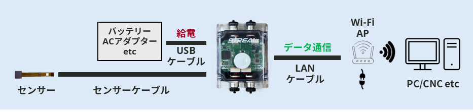 ※Wi-Fi アクセスポイントおよびホスト機器(PC/CNC etc)はお客様でご準備いただく必要がございます。