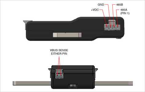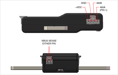 SSD シリーズの外観と、CANBus / RS‑485 インターフェースのコネクター構成を以下に示します。装置への実装時に必要となる外観形状やコネクター位置、取り付け方向などを確認いただけます。
