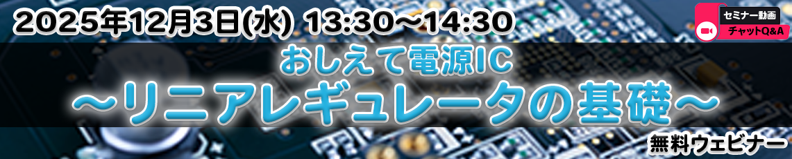 今回は「おしえて電源IC ~リニアレギュレーターの基礎~」を開催いたします。