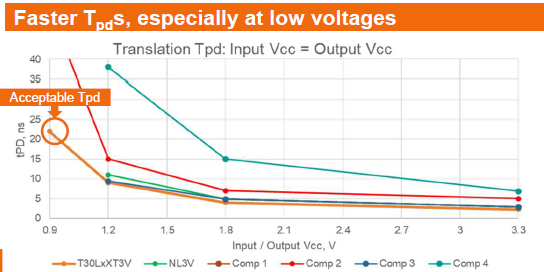 T30LMXTシリーズの電圧トランスレーターは、TREOプラットフォームを活用し、特に低電圧で高速動作し、消費電力も低減する電圧トランスレーターを実現します。