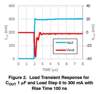 ・超高速負荷過渡応答:0~300 mA in 100 ns [下図参照]