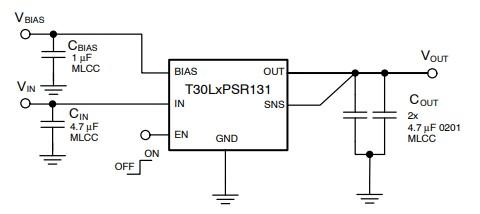 本製品は、バイアス電源電圧(VBIAS)を備えた1A対応の製品です。 温度範囲全体で1%精度の安定した出力電圧を提供します。
