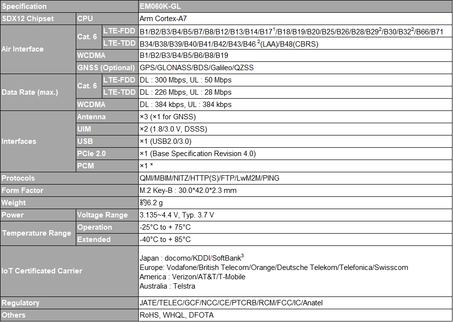 Qualcomm SDX12搭載 EM060K-GL(M.2)