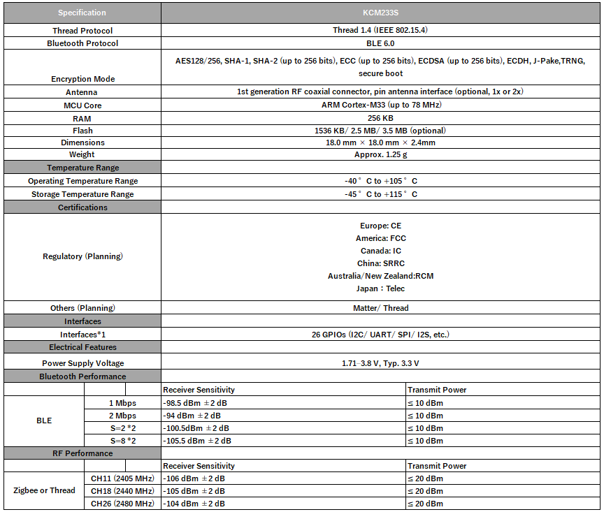 EFR32MG24搭載 Zigbee/Threadモジュール KCM233S