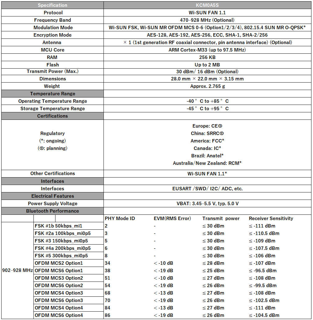 EFR32FG25搭載 Wi-SUNモジュール KCM0A5S