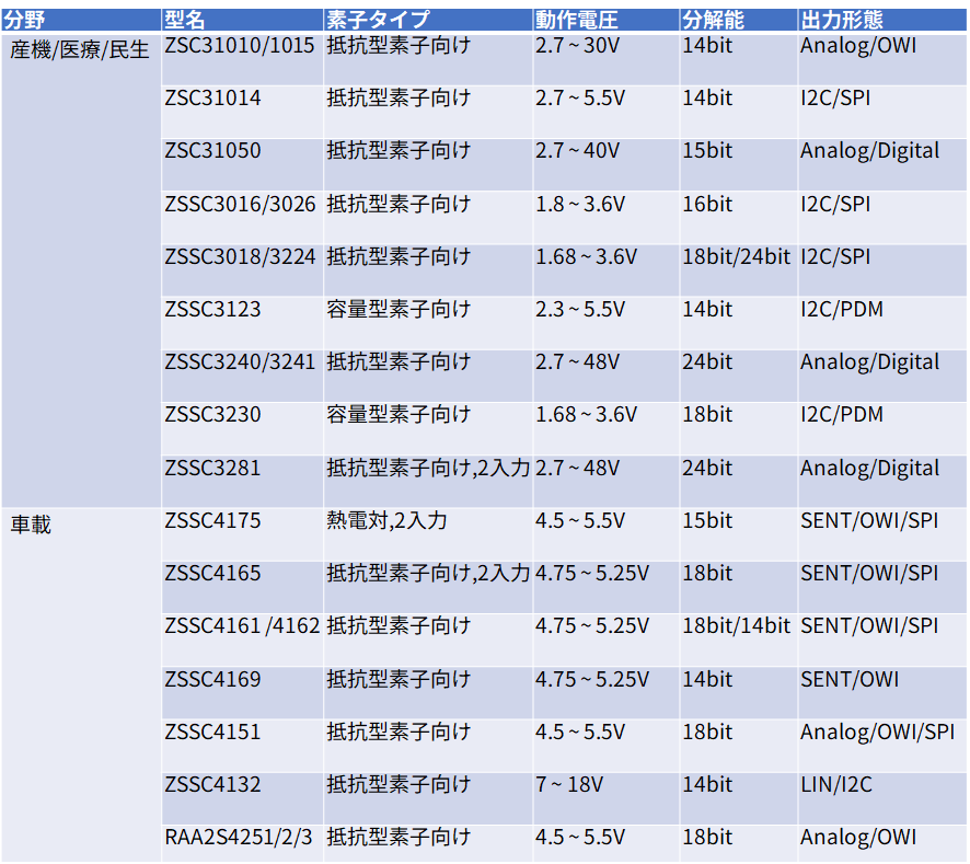 センサー素子からの信号を増幅・補正・変換を行うICとして様々なセンシングアプリケーションに適用可能な製品です。