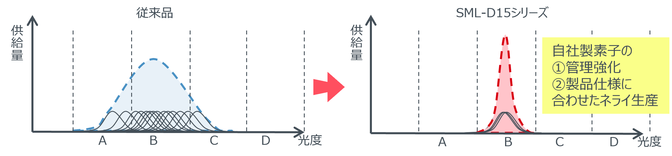 ● 光度シングルランク供給で、明るさの “バラつき” を解消