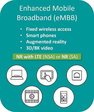 eMBB(Enhanced Mobile BroadBand)は大容量通信を指しております。従来のLTE通信よりも格段にスループットを向上させ、理論値としては215G[bps]以上(New Radio規格適用)、またSierra Wireless社の検証ではピーク時に5~7G[bps]のスループットを確認しております。その他通信レイテンシも改善され、従来の15[ms](LTE)から3~5[ms]程度まで低減される見込みとなります。