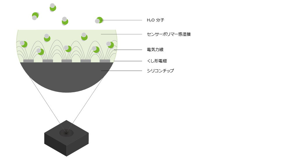 応答が速く、長期間精度が安定し、水にぬれても故障しにくいという特性は、この独自構造によって生まれています。