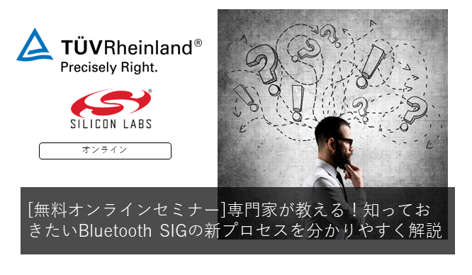 当セミナーではBluetooth®のご開発をされているお客様/認証に携わられているお客様向けに、Bluetooth認証試験を行うテュフ ラインランド ジャパン株式会社よりBluetooth SIG認定コンサルタントをお招きして最新のBluetooth SIGの新認証プロセスのポイントをわかりやすくご説明いたします。