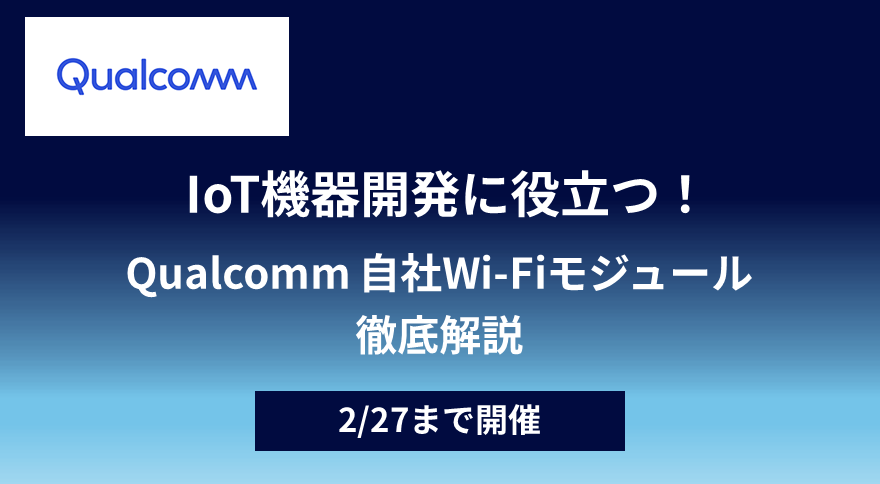 Qualcomm社 Wi-Fiモジュールの全貌をオンデマンドセミナーで解説!『BLE並みの低消費電力』や『ATコマンドで簡単に動かせる』といったメリットが高く評価され既に多くのお客様にてのご検討が進んでいます。IoT機器開発に役立つ最新情報を凝縮した内容となっていますので、ぜひご視聴ください。