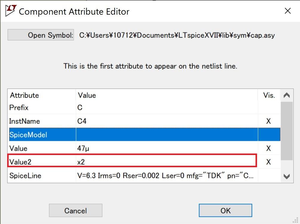 Analog Devices LTspice : LT8610ABのJIG回路の出力コンデンサー横の「x2」の意味と設定方法を教えてください。