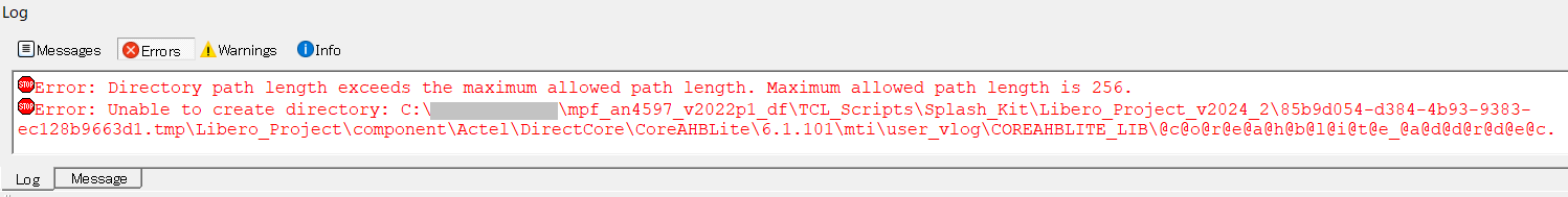 Microchip FPGA: Libero SoCのプロジェクトを置く階層に制約はありますか?
