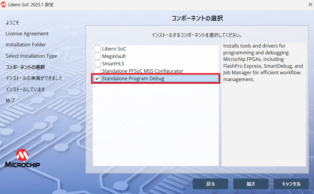 Select Installation TypeにてCustomを選択後、Standalone Program Debugを選択しインストールしてください。