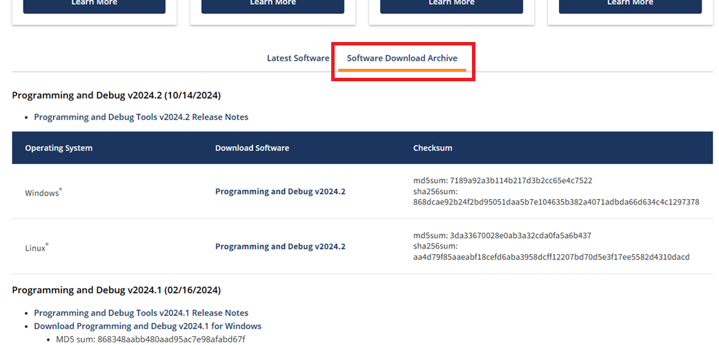 下記URLのSoftware Download Archiveタブよりダウンロードして下さい。