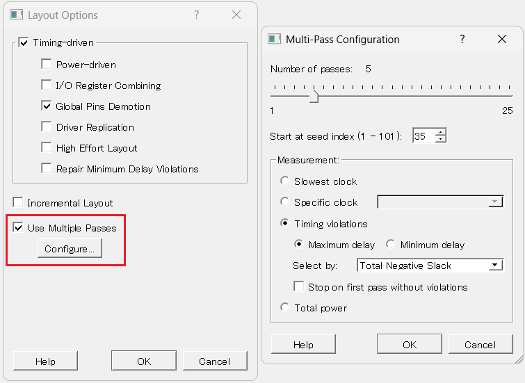 ※ 詳細については「Libero SoC Design Flow User Guide」の「Multiple Pass Layout Configuration」の項目をご参考ください。