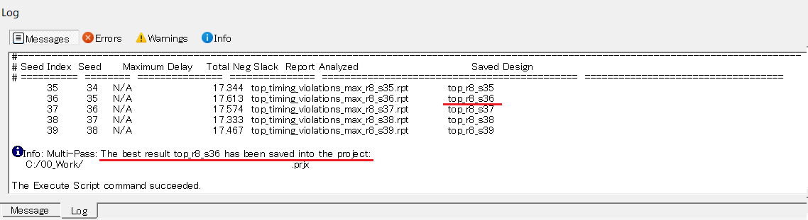 Logにてbest resultと記載された配置配線結果が保存されます。