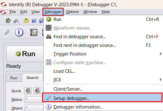 Identifyの上部Debugger > Setup debugger...をクリック、