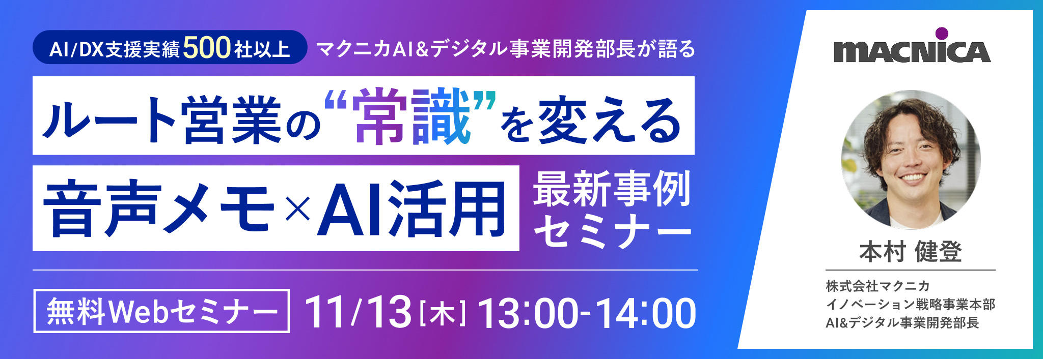 AI 【アーカイブあり】「ルート営業の"常識"を変える」音声メモ×AI活用最新事例セミナー