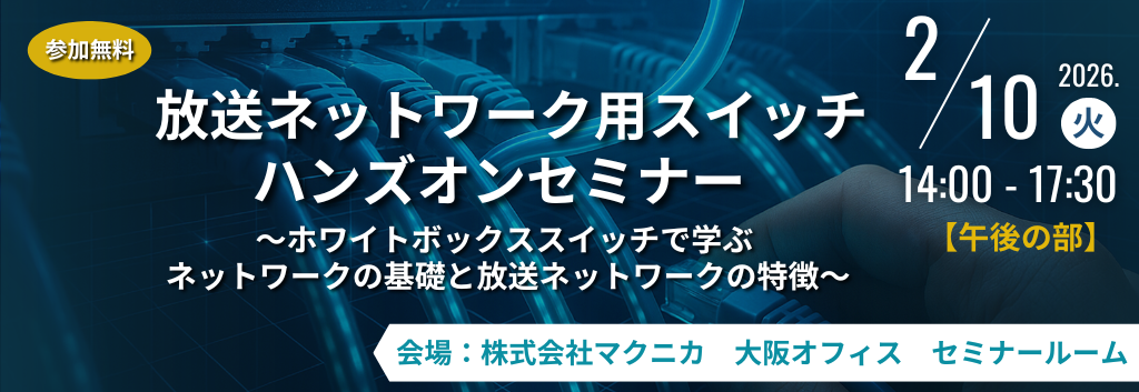 ネットワーク 【午前の部】放送ネットワーク用スイッチ ハンズオンセミナー ~ホワイトボックススイッチで学ぶネットワークの基礎と放送ネットワークの特徴~