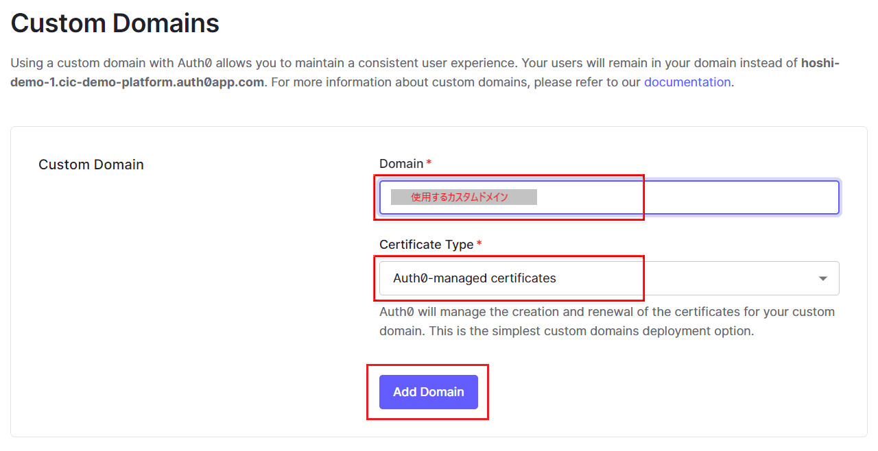 ![Auth0管理画面で、[Branding] > [Custom Domains]をクリック](/business/security/okta/image/okta_custom_domains_dr01.png)