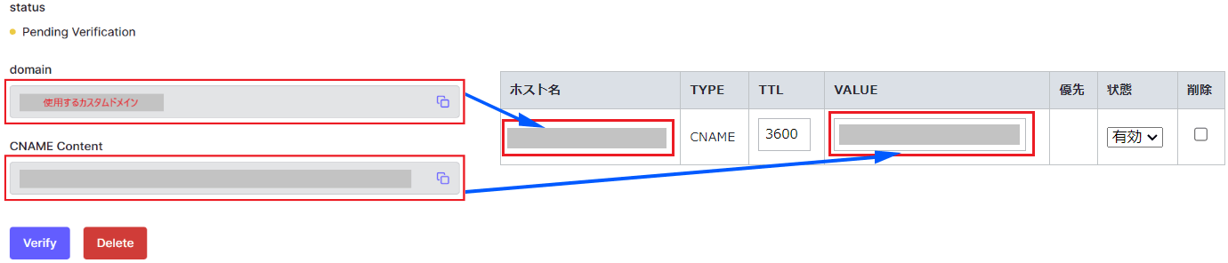 - Reflect the displayed DNS settings (CNAME record) on the domain registrar side