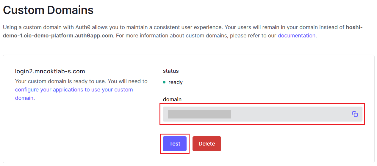 - Change the domain value of the linked Auth0 tenant to the set custom domain