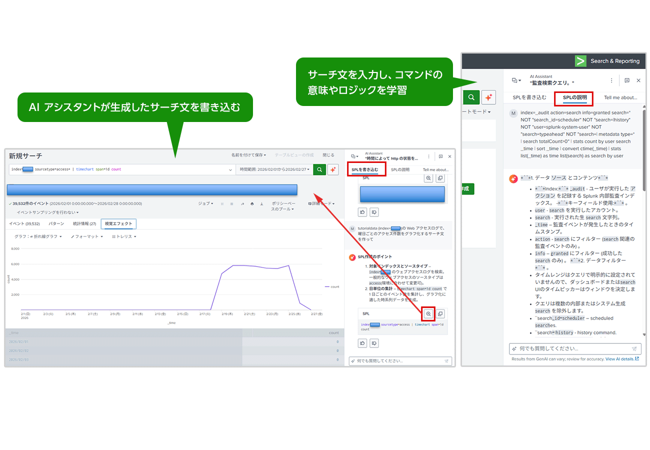 - SAIA supports the generation and interpretation of SPL using natural language.