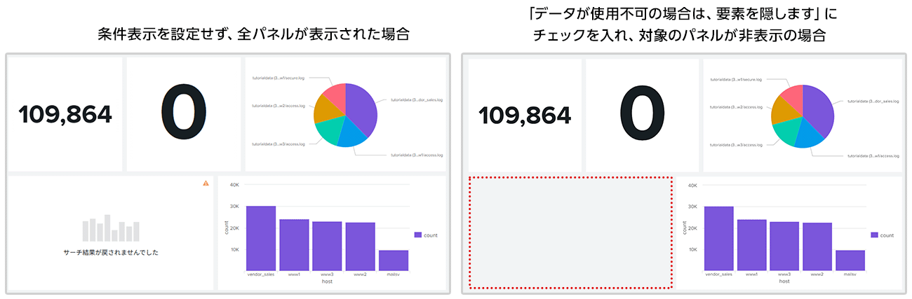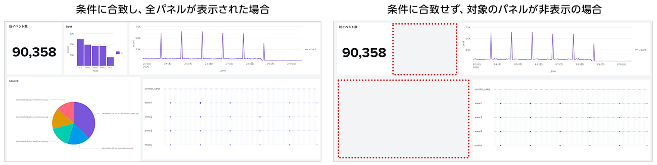 By specifying variable conditions for roles and users, you can display panels only to specific departments or users. There is no need to separate dashboards for each department; you can manage display/hide on a panel-by-panel basis. - Hide panels that do not contain target data