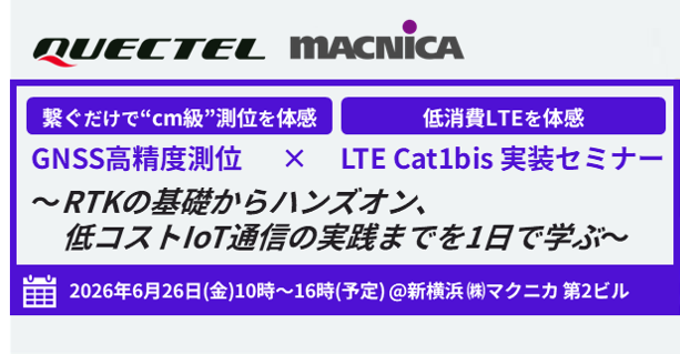 これから開催GNSS高精度測位 × LTE Cat. 1 bis 実装セミナー ~ RTKの基礎からハンズオン、低コストIoT通信の実践までを1日で学ぶ ~[新横浜:2026/6/26]