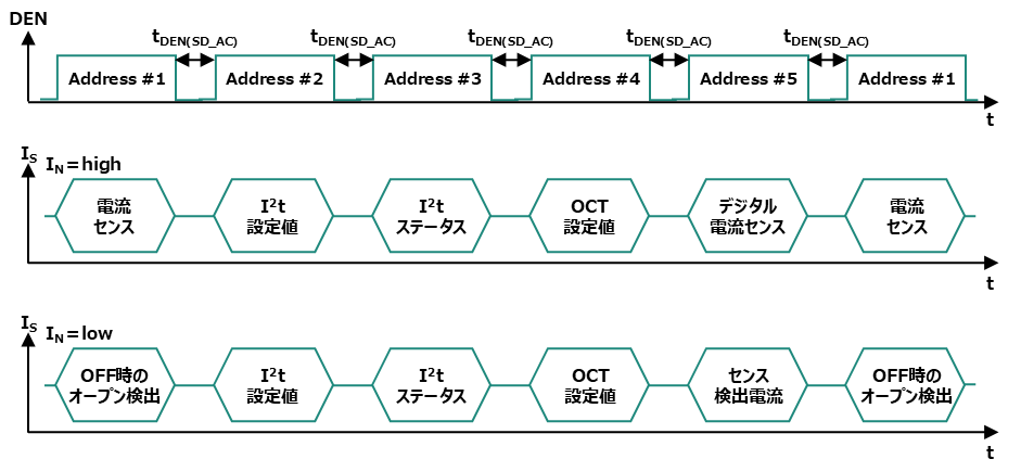 The sequential diagnostic function allows you to read the status of various devices through a single analog current sense output.